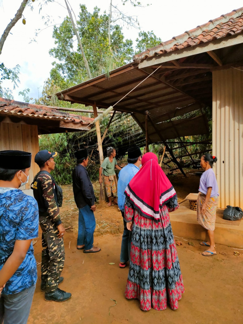 Satu rumah misalnya rusak parah, atap terasnya ambruk karena tertimpa rumpun bambu yang roboh oleh angin.